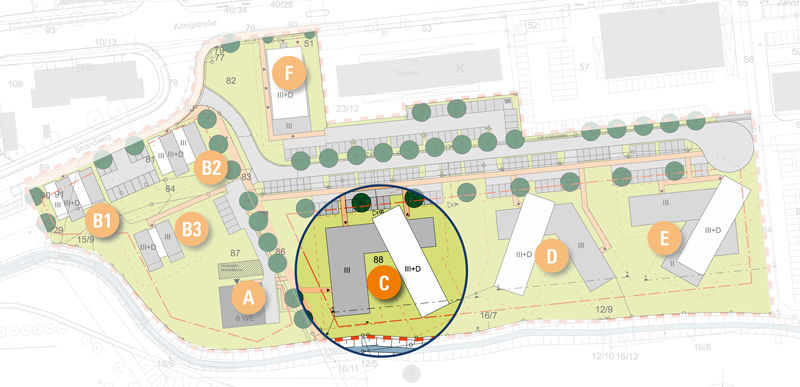 | Wohnung | Gebäude | Stockwerk | Räume | m² | |