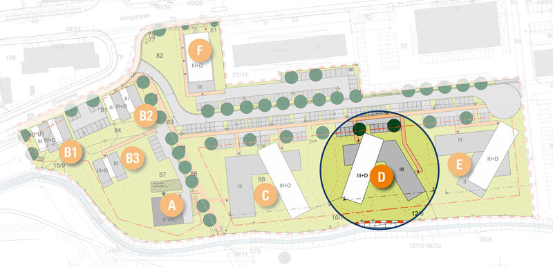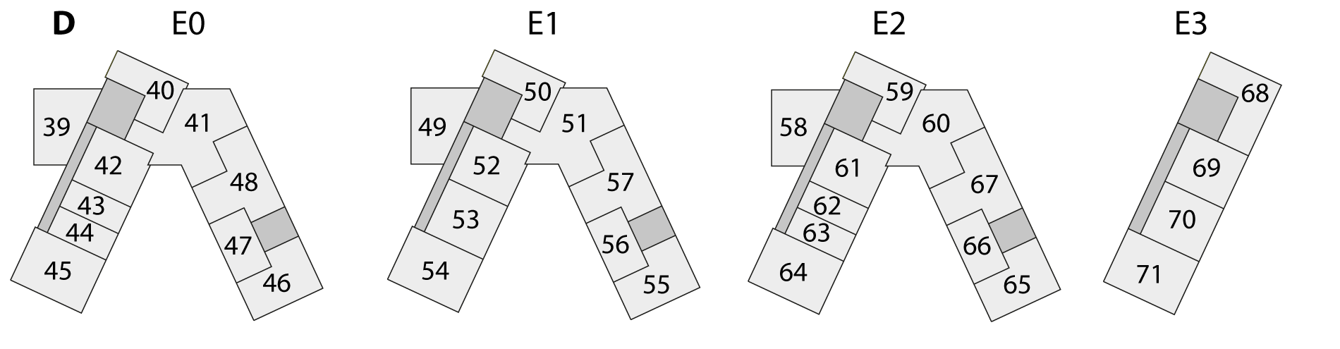 | Wohnung | Gebäude | Stockwerk | Räume | m² | |