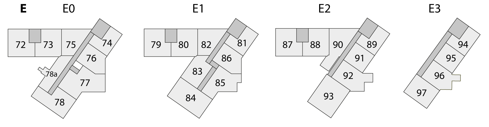 | Wohnung | Gebäude | Stockwerk | Räume | m² | |